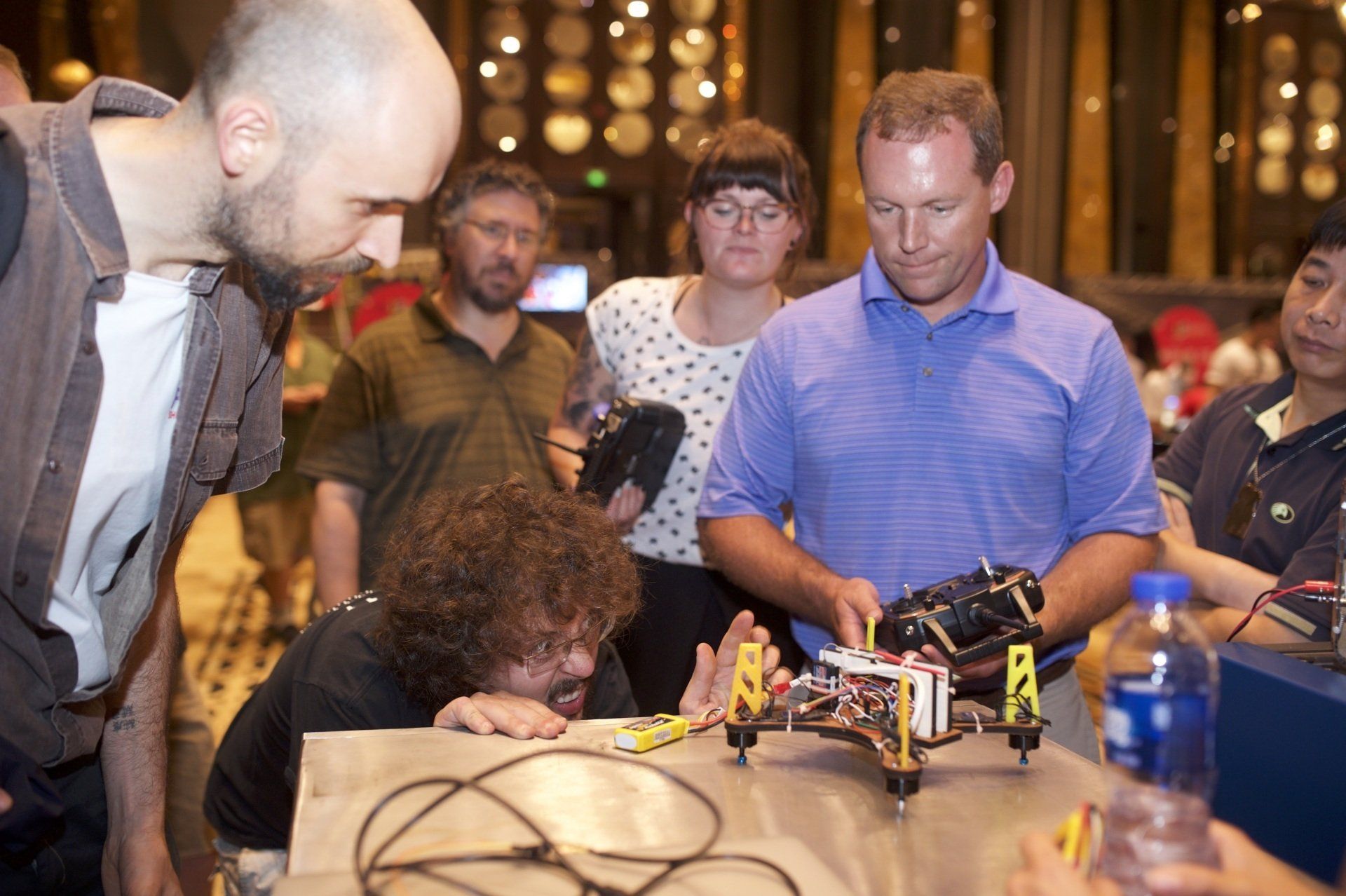 Fab13 workshop, presenting our drones developments in a hackathon-style in which we help the participants in develop a new drone prototype, then released as open source in the community.